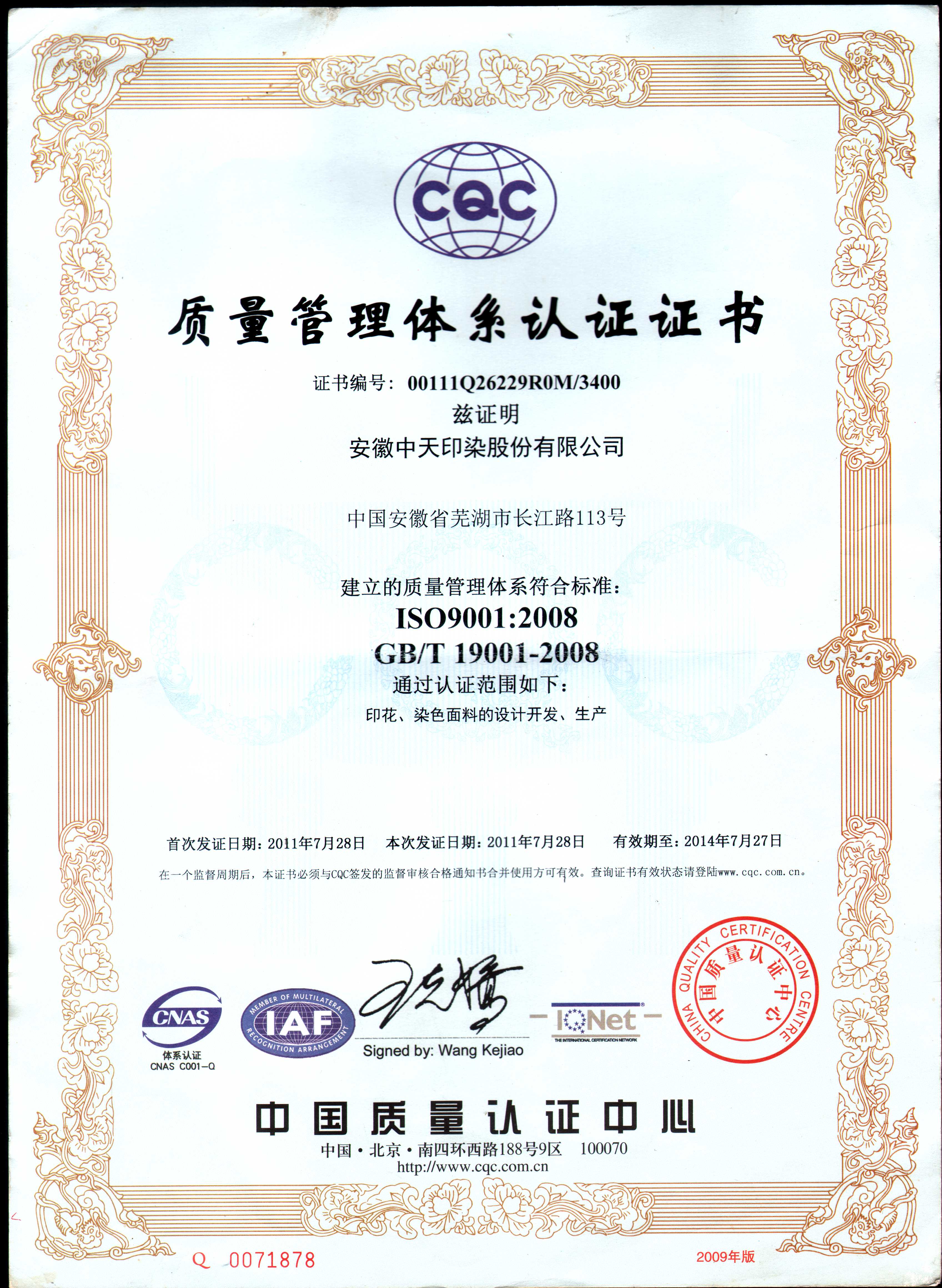 2011年榮獲質(zhì)量管理體系認證