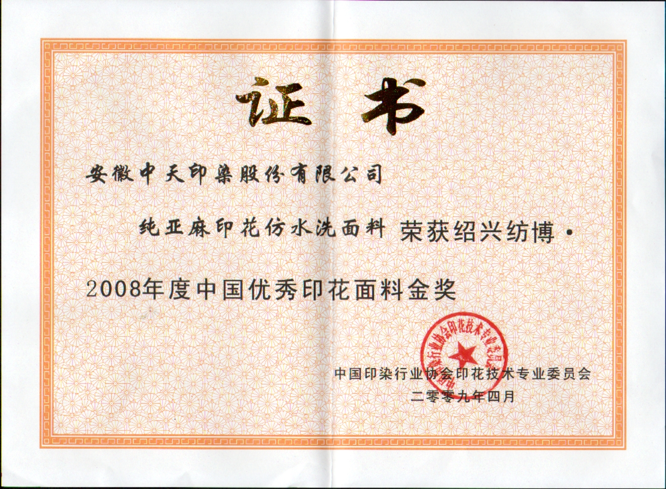 純亞麻印花防水洗面料榮獲中國(guó)優(yōu)秀印花面料金獎(jiǎng)
