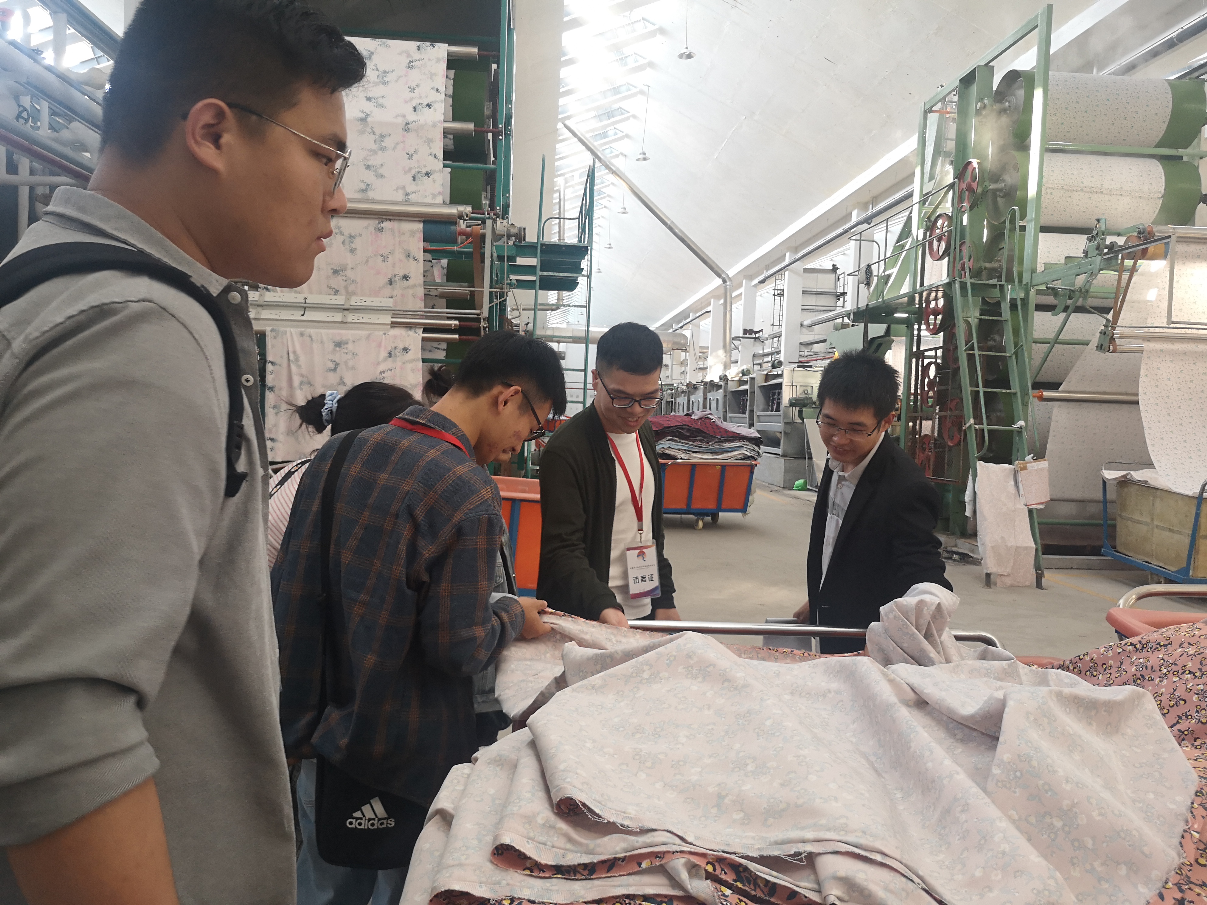 在公司陪同人員的帶領下,銅陵學院學生們在一樓大屏前觀看了安徽中天紡織科技股份有限公司宣傳片,隨后公司陪同人員為同學們詳細介紹了我公司的發(fā)展與規(guī)劃等情況,促使參觀學生對公司情況有更進一步的了解,并帶領他們陸續(xù)參觀了行政辦公區(qū)域、二樓陳 列廳、印花車間、染色車間等區(qū)域。