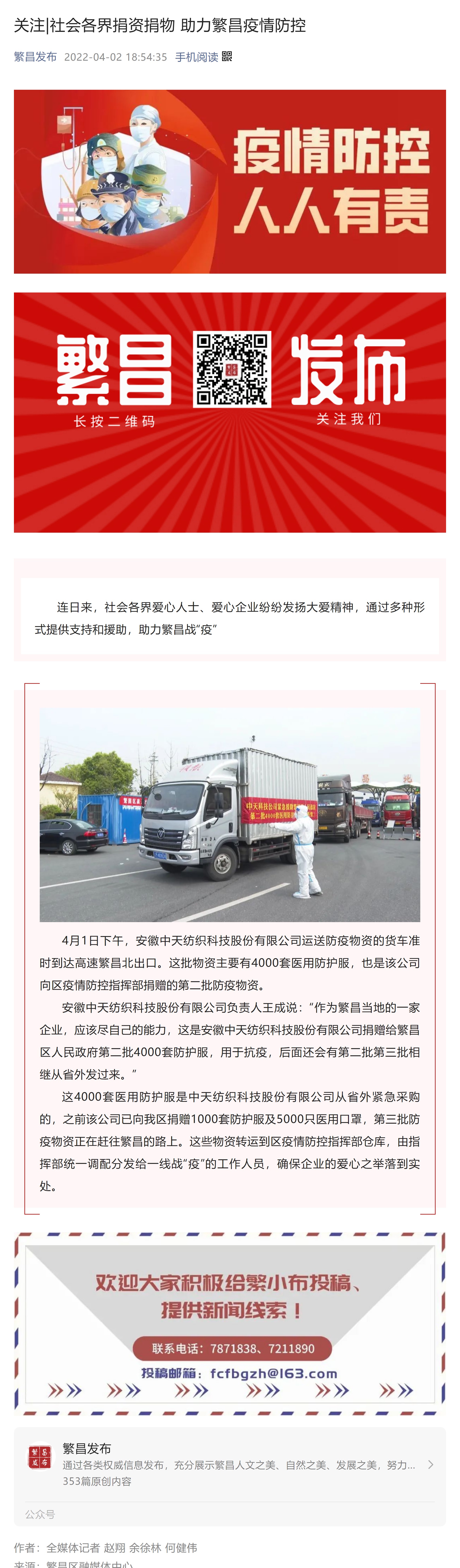 面對(duì)突如其來(lái)的新冠疫情安徽中天紡織科技股份有限公司積極響應(yīng)政府號(hào)召,在實(shí)現(xiàn)自身精準(zhǔn)區(qū)域防控、公司全體員工吃住在廠里堅(jiān)守崗位、努力拼博,將全力確保21式全軍大列裝任務(wù)圓滿完成的基礎(chǔ)上,主動(dòng)作為,盡顯公司社會(huì)責(zé)任與國(guó)防使命。